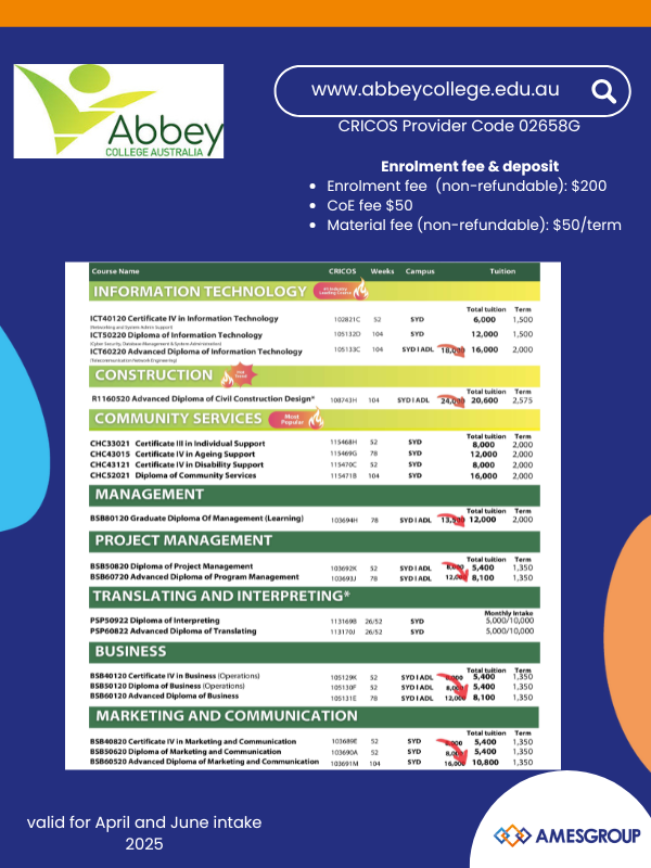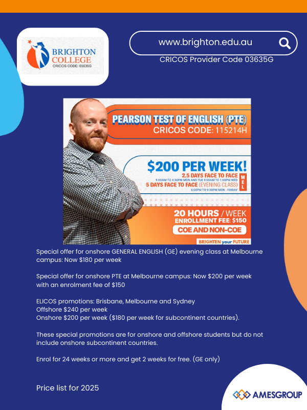 مرحبا بكم في مجموعة AMES صفحة عروض شركاء أستراليا وقوائم الأسعار. هنا، يُمكن لشركائنا الكرام الوصول إلى أحدث العروض الحصرية وقوائم الأسعار المُحدثة لمجموعة دوراتنا في اللغة الإنجليزية والطب البيطري والتعليم العالي. نحن ملتزمون بتزويدكم بالأدوات والمعلومات اللازمة لتعزيز إمكانات أعمالكم.